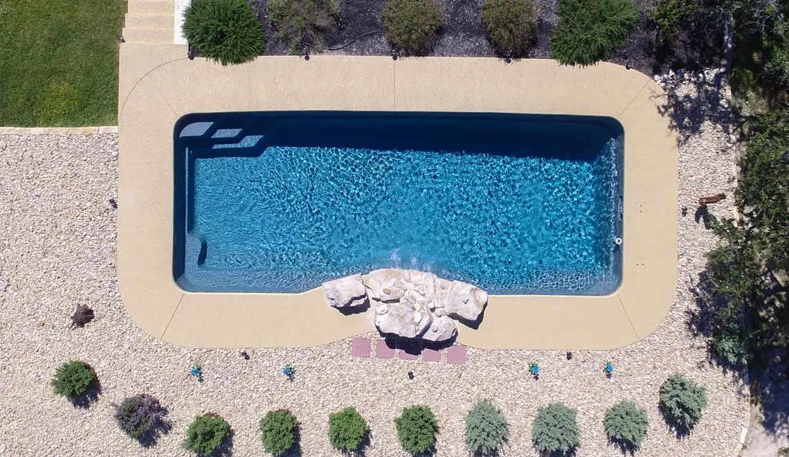 Generously sized, uniquely stylish. This pool offers the incorporated features of multiple entry points, swimouts, optional spa jets and a clever focal point that push the limits of composite pools.